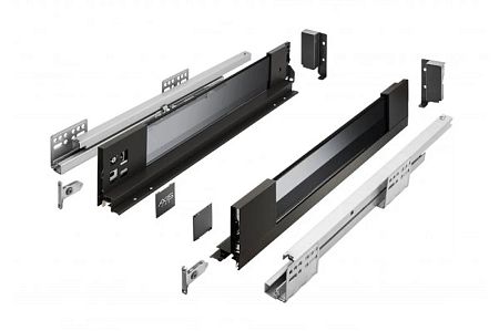 Ящик со стеклянными боковинами GTV AXIS PRO комплект полн. выдв. 450/ 86мм с дов. черный