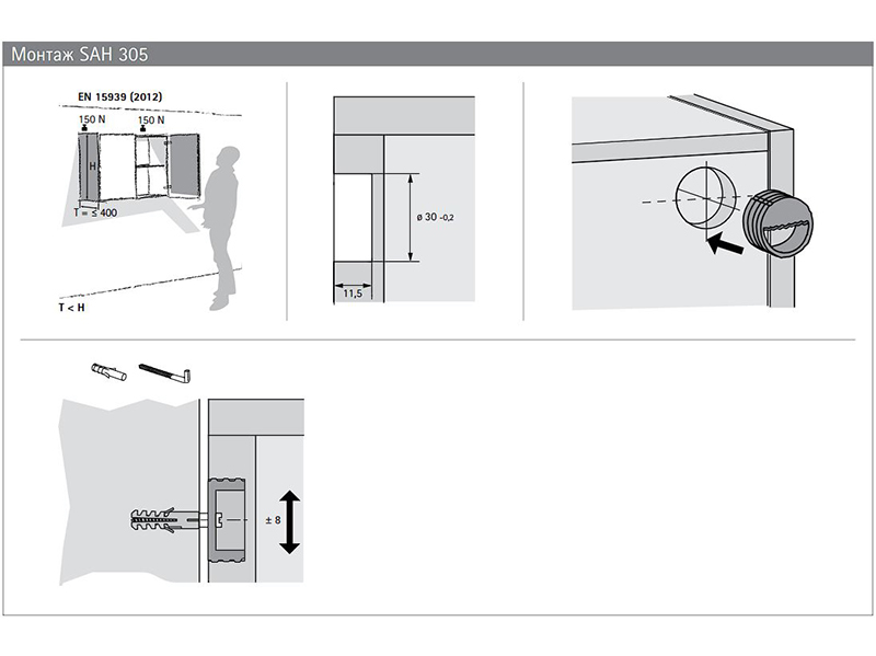- легкий монтаж: подвес hettich легко запрессовывается в отверстие ø 30*11,5 мм. Подходит для задних стенок шкафов толщиной не менее 16 мм.