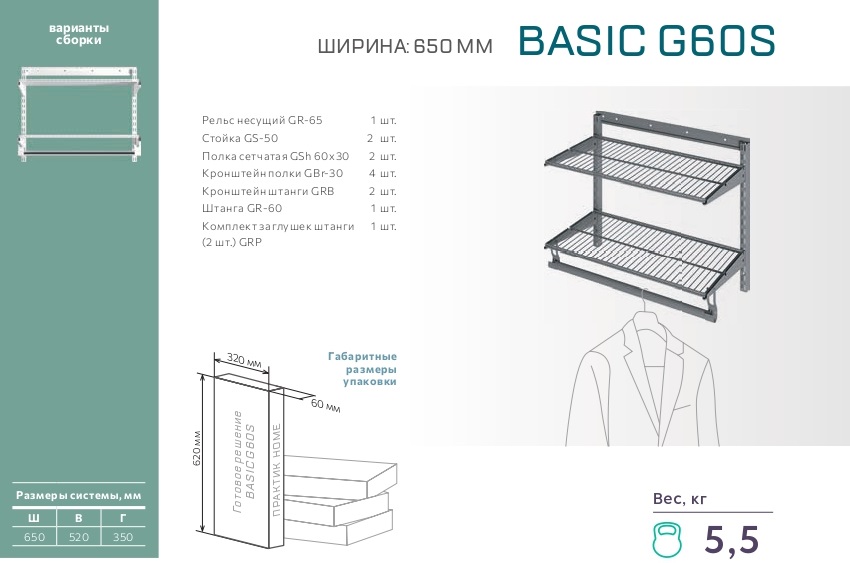 Полка сетчатая ПРАКТИК Home GSh 60х30 графит – 2 шт.