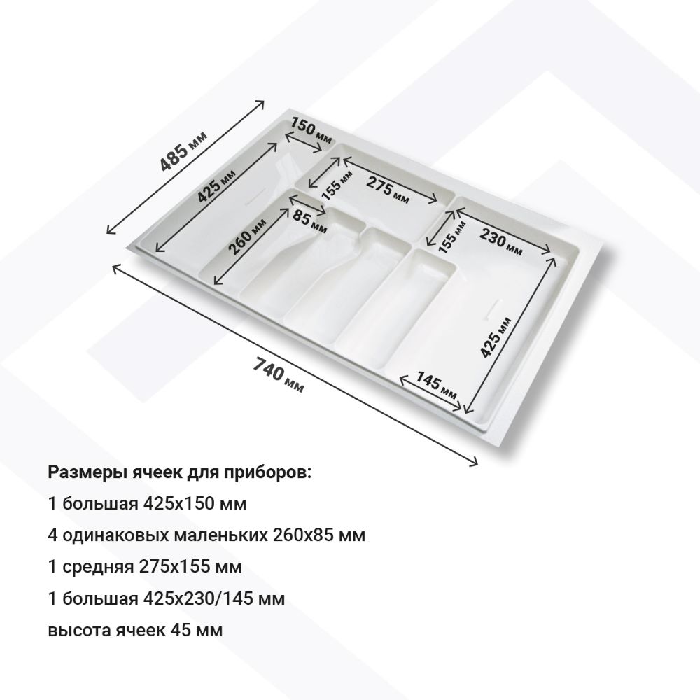 Лоток для столовых приборов М800мм, 740х485мм, белый