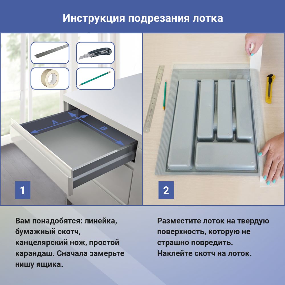 Лоток для столовых приборов М900мм, 840х485мм, серый