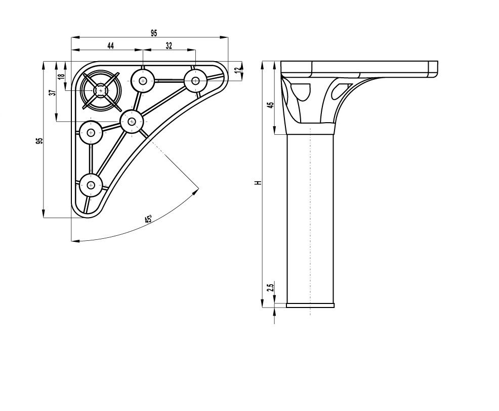 Опора нерегулируемая 100мм черный (X042.100)