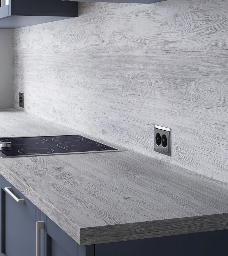 Серо-белая холодная гамма фактурного дуба поможет создать интерьер в идеальном скандинавском стиле – лаконичном и элегантном.